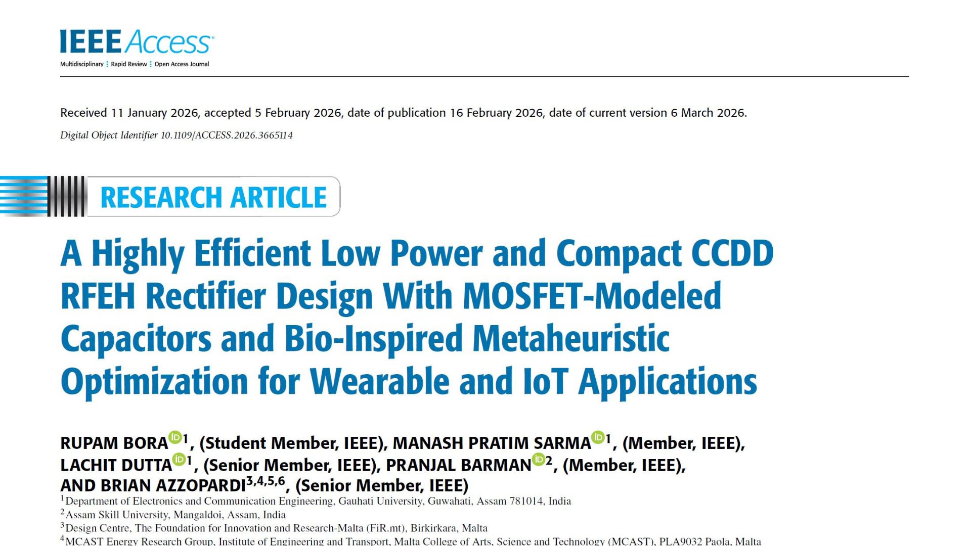 New Publication on RF Energy Harvesting for IoT